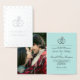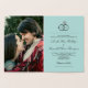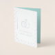 Elegant folded wedding invitation printed on kraft paper with silver foil on the cover, where a beautiful tile pattern surrounds a silver foil frame around two interlocked rings, your initials, and names. Inside you can add a romantic photo and the wedding invitation wording.