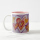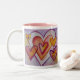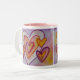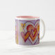 Watercolor painting of hearts interlocking with each other like love from life relationships. The colours are a soft lavender purple, pinks, red, yellows, and gold. This image is meant is a tribute to all those we love in our life. The interlocking love heart connections hold us together in joy and celebrations. It is love too for strengthening our souls for life's challenges. Personalise the heart mug with your own text and images using the Customise It option. Make special Valentine's Day, Wedding, Engagement, Baby, or Love custom mug gifts! Profits from this sale support the non-profit 501(c)3 DonnaBellas Angels.