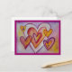 Watercolor painting of hearts interlocking with each other like love from life relationships. The colours are a soft lavender purple, pinks, red, yellows, and gold. This image is meant is a tribute to all those we love in our life. The interlocking love heart connections hold us together in joy and celebrations. It is love too for strengthening our souls for life's challenges. Personalise the hearts postcards with your own text and images using the Customise It option. Make special Valentine's Day cards, Wedding Thank You Notes, Engagement Save-the-Date, Baby Birth Announcements, or your special custom Love hearts postcards! Profits from this sale support the non-profit 501(c)3 DonnaBellas Angels.