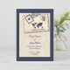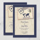 This design captures the spirit of wanderlust and love, blending vintage travel aesthetics with rustic charm. Featuring classic airmail stripes in red and blue, muted beige tones, and subtle map textures, it evokes the feeling of setting off on a grand romantic journey. Elements like postage stamps, world map details, and retro styling make it perfect for couples who dream of a global celebration filled with adventure, connection, and timeless elegance.