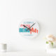 The clock did not take as long to arrive as I thought it might and was extremely well packaged. I didn't do the measurements so I didn't realize it is a little smaller than the average clock but that does not matter (just make sure you check if that's important to you).It is really nifty! It seems very solid and well made not flimsy at all. It has been going well and has kept good time in its few weeks on my wall. Nice product. Gets noticed too! Nicer in real life than the picture but true to the picture