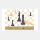 International Chess Day is July 20th. Design features a chess board, kings, queen, castle, and pawn.