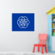 This design features the international flag of Planet Earth, designed by Oskar Pernefeldt. The seven circles symbolise the seven continents of Earth (i.e. Africa, Antarctica, Asia, Australia/Oceania, Europe, North America and South America); the rings also form a flower pattern, which symbolises the importance of life on Earth. The background is blue to represent the oceans on our "Blue Planet". The flag is intended "to remind the people of Earth that we share this planet, no matter of national boundaries" and "that we should take care of each other and the planet we live on".