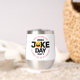 Laughter is the best medicine, and what way to tickle your funny bone and celebrate humour than on July 1st (International Joke Day) with this commemorative stainless steel stemless wine tumbler, which features the salutations "Happy International" and "Celebrate the Joy of Laughter" encircling the words International Joke Day, with a laughing face standing in for the letter O. Reverse shows identical design.