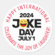 Laughter is the best medicine, and what way to tickle your funny bone and celebrate humour than on July 1st (International Joke Day) with these stickers, which feature the salutations "Happy International" and "Celebrate the Joy of Laughter" encircling the words International Joke Day, with a laughing face standing in for the letter O.
