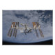 International Space Station set against the background of a cloud covered Earth featured with Terra.