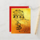 Cute and adorable ink painting of a cat + Large 2023 with wishes in many languages: Vietnamese, Chinese, English, Russian French, German, Spanish, Finish, Swedish... Design on vertical standard postcard with golden textured image as background (front). Matching greeting card. Perfect for wishing good luck and wealth for the Vietnamese New Year of the Cat 2023.