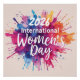 Decorative International Women's Day 2026 poster with colourful paint splash background in pink, blue, lilac and yellow. International Women's Day is a global day celebrating women's achievements politically, socially and economically, supporting advancement of women and to educate and to raise awareness of women's equality around the world.