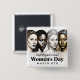 March 8th is International Women's Day button. Digital art depicting multi-cultural women.