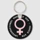 Black key chain with pink women's symbol International Women's Day is March 8th.