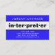 These interpreter business cards featuring unique lettering and bold colours are sure to stand out to anyone looking for a interpreter.