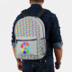 This awesome backpack features a digitally created image of a circle of love hearts. Each heart is a different colour of the rainbow. The red, orange, yellow, green, blue, indigo and violet hearts are a bright fun way of expressing your love for a boyfriend, girlfriend, husband or wife. The black text in the centre of the circle of hearts reads, “Love is colorblind” and celebrates love between people of different races.