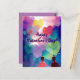 Interracial queer couple in love with hearts postcard