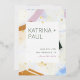 Collage creates an artsy backdrop for this modern save the date card. The addition of gold foil elevates the design.