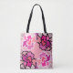 Tote Bag over the shoulder style fashion statement accessory printed with Into The Pink Mid Century Geometric Pattern Art design original artwork illustration by TheFabricSeal print on demand shop at Zazzle.com  #ZazzleMade https://www.zazzle.com/store/thefabricseal TheFabricSeal©️Original.