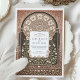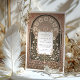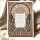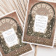 This exquisite wedding invitation showcases a breathtaking design deeply rooted in the Arts & Crafts and late Art Nouveau movements. The sophisticated colour palette features dusty blues, muted creams, pale yellows, and soft browns, creating a vintage and timeless feel. The outer border displays a delicate pattern in pale mauve, pink, and blue. The central arched panel is lavishly adorned with stylised botanical motifs. Prominent cream and pale yellow anemone-like flowers, or possibly stylised dogwood or hellebore, with intricately detailed centres, are a key feature. These are complemented by smaller, charming pale yellow blossoms and clusters of tiny blue and white accent flowers, reminiscent of forget-me-nots, all interwoven with abundant pale yellow and dusty blue foliage. The design is rich in intricate patterns, including a decorative medallion above the text area, and layered borders that combine geometric precision with organic, flowing lines. The overall effect is one of refined elegance, artistic craftsmanship, and romantic vintage charm, perfect for couples who appreciate detailed and timeless design. The reverse side provides a dedicated space for "The Finer Details," maintaining the elegant aesthetic and ensuring all necessary information is beautifully presented.