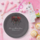 Lead your guests into a realm of dark, enchanting elegance with our exquisite black gothic party napkins. The deep, grey backdrop sets a dramatic stage, creating a striking contrast that captivates the senses. At the heart of the design hangs a bold black chandelier, symbolising both beauty and the allure of the dark. Illuminated by three flickering candles, this intricate chandelier is embellished with shimmering black onyx jewels, surrounded by delicate roses. Each element evokes a sense of mystique, casting a spell of magic and setting the tone for an unforgettable wedding day. Personalise this party paper plate with the details of your special day.