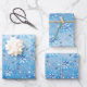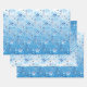 Intricate blue and white stars and snowflakes wrapping paper sheet