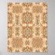 A complex, repeating ethnic pattern with a handcrafted, textile-like appearance. The design features intricate tribal and ornate floral motifs arranged in a symmetrical tile. The color palette is dominated by warm, earthy tones, including terracotta orange, muted olive green, shades of taupe and brown, set against a cream or off-white background. The style is strongly Bohemian and vintage, suitable for textiles, fashion accessories like sandals, or wallpaper.