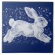 In rich, dark navy blue or cobalt blue with white, a cute white bunny rabbit hops among stylised floral, berry, swirls and leaf designs. A wonderful, unique artwork for your decor, or as a gift welcomed by any animal or nature lover. Would be perfect in any modern home decor, from traditional to cottagecore, and it can be used as wall decor or as a kitchen trivet. The artwork was originally painted on canvas. Whimsical, unique, original artwork & design by Tuzi Williams.