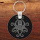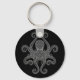 An intricate octopus design decorated with gray swirls and dots. The symmetrical pattern has all eight of it’s legs outstretched and it’s eyes looking forward. The octopus sits on a pure black background creating a subtle contrast on the surface of this keychain. The body and arms of the octopus are comprised of delicate lines that come together to form a stunning pattern. This stylish design is a beautiful take on this strange and wonderful sea creature.