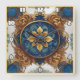Intricate Floral Design in Blue and Gold Square Wall Clock