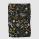 Intricate floral pattern with gold and white branches, leaves, and flowers on a black background. The design feels elegant and sophisticated.