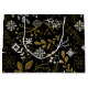 Intricate floral pattern with gold and white branches, leaves, and flowers on a black background. The design feels elegant and sophisticated.