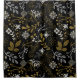 Intricate floral pattern with gold and white branches, leaves, and flowers on a black background. The design feels elegant and sophisticated.