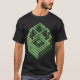 This unique t-shirt design features an intricate geometric maze rendered in shades of green. The maze is constructed with a series of interconnected, three-dimensional lines and shapes, creating a complex and visually engaging pattern. The design appears to rise and fall with a sense of depth, almost as if it is a small architectural structure. The varying shades of green add depth and contrast, enhancing the labyrinthine effect. Set against a solid black background, the maze stands out boldly, making this t-shirt a perfect choice for those who appreciate modern, abstract art and puzzles.