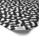 The image features a highly detailed abstract pattern, where small geometric shapes are arranged in a repeating, organised fashion. The design creates an optical illusion of movement and depth due to the interplay between the shapes. The pattern is presented in a monochrome colour scheme, with black and white as the primary tones, which emphasizes the precision and intricacy of the pattern.