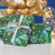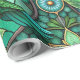 Intricate green and teal stained glass-style wrapping paper