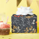 Intricate Leaf and Berry Pattern On Black Wrapping Paper