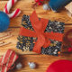 This image features a beautifully intricate pattern of leaves and berries against a black background. The design showcases various types of foliage in warm colours such as gold, red, and orange, interspersed with delicate white branches and dots, creating a visually appealing contrast. The overall composition exudes a modern artistic vibe, making it suitable for various decorative purposes including holidays.