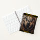 Intricate moose carving in forest notebook