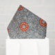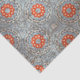 This tissue paper is adorned with a mesmerising pattern of geometric shapes in a harmonious colour scheme of orange, blue, and grey. The repeating design features large orange circles with smaller circles inside, surrounded by blue and grey diamond shapes connected by grey lines. The light blue background adds a touch of tranquillity to the overall design.