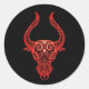 Intricate Red Taurus Zodiac on Black Classic Round Sticker