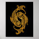 Intricate Yellow Pisces Zodiac on Black Poster