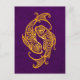 Intricate Yellow Pisces Zodiac on Purple Postcard