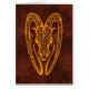 This stylised symbol for the zodiac sign of Aries is decorated with intricate lines and dot patterns. The pattern features an elaborate rams head with long flowing horns stretching down the side of the design. Rough textures and natural reddish brown colours give the pattern the look of being carved out of stone. This stunning design is a beautiful and stylish way to show of your Astrological sign.