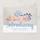 Introducing Baby Boy Blue Typography Photo Announcement Postcard