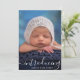 Custom Photo Collage Script Overlay Baby Birth Announcement is a very popular modern design that offers a hero image on the front below an introducing and name overlay. The bac has a four photo collage with templates for the name, birth stats and welcomed by text.