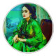 An AI-generated portrait of an introspective woman in a green dress