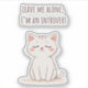 Cute white cartoon cat with the phrase “Leave Me Alone I’m an Introvert”. Perfect for introverts, cat lovers, and anyone who enjoys funny, relatable cat quotes. Great for stickers, gifts, and cozy items.