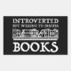 Introverted But Willing To Discuss Books. Funny book lover design is a great gift for someone who loves books, reading, libraries, book shops and book stores. Perfect for a librarian, book nerd or bibliophile. Are you a bookaholic and an introvert? Do you love to read literature and novels in a library or a used book store? Are you an insatiable reader? If you're a geek about books, this funny book quote design is for you!
