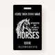 Funny horse tack store sales representative name badge. Horse equipment business. Introverted, but willing to discuss horses funny horse design in black and white with vector horse graphic.