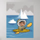 Cartoon of an Inuit or Eskimo in a kayak.
