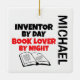 This is a unique ornament featuring the quote "Inventor by Day Book Lover by Night", perfect for any inventor that loves to read.