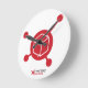 The clock did not take as long to arrive as I thought it might and was extremely well packaged. I didn't do the measurements so I didn't realize it is a little smaller than the average clock but that does not matter (just make sure you check if that's important to you).It is really nifty! It seems very solid and well made not flimsy at all. It has been going well and has kept good time in its few weeks on my wall. Nice product. Gets noticed too! Nicer in real life than the picture but true to the picture