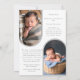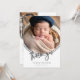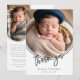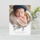 Simple and classy, modern photo trendy script text "Thank You" gender neutral baby birth announcement design featuring an inverted arch photo on front and two mini photo arches on back. Simply add your photos and details to complete. Composite design by Holiday Hearts Designs.